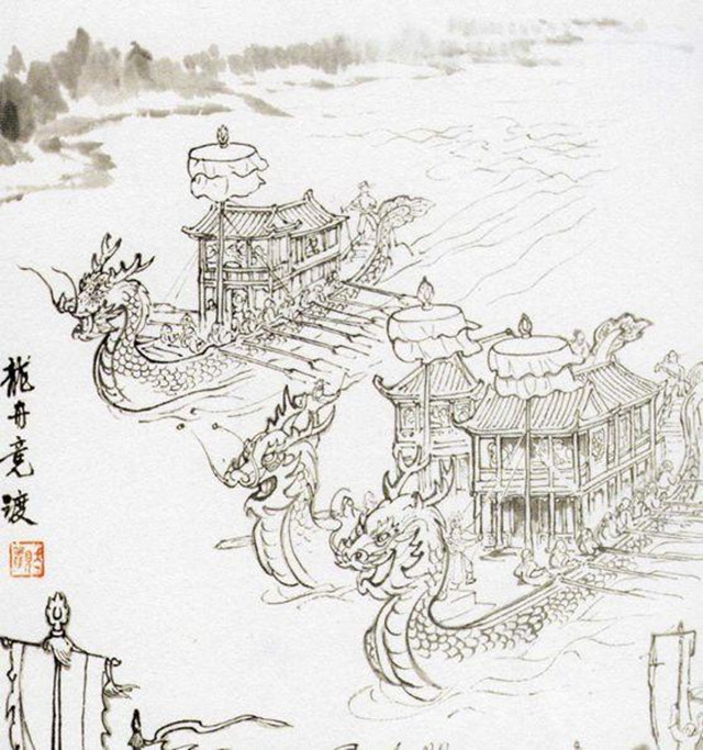 相传起源于古时楚国人因舍不得贤臣屈原投江死去,许多人划船追赶拯救。他们争先恐后,追至洞庭湖时不见踪迹。之后每年五月五日划龙舟以纪念之。借划龙舟驱散江中之鱼,以免鱼吃掉屈原的身体。竞渡之习,盛行于吴、越、楚。