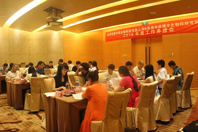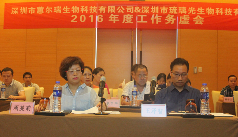 2016年7月2日,深圳市蕙尔瑞生物科技有限公司与深圳市琉璃光生物科技有限公司召开了2016年度工作务虚会。会议由公司各部门领导及主要负责人参加,分析行业态势、明确未来战略规划,部署下半年工作重点。